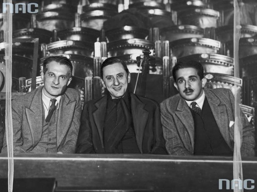 Julian Tuwim, Fryderyk Jarossy i Marian Hemar w Teatrze „Cyrulik Warszawski”, źr. NAC